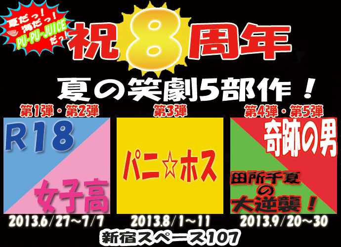 昨年、劇団創立8周年を記念し、新宿スペース107<夏の笑劇5部作公演>と銘打ち、